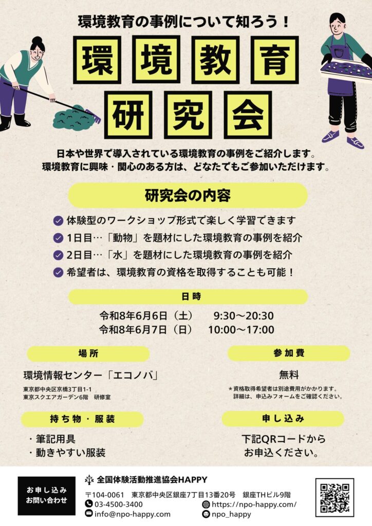 2026年6月6日(土)・6月7日(日)「第1回 環境教育研究会 2026」を中央区立環境情報センター「エコノバ」(〒104-0031 東京都中央区京橋3丁目1-1東京スクエアガーデン6階 研修室2)にて開催します。